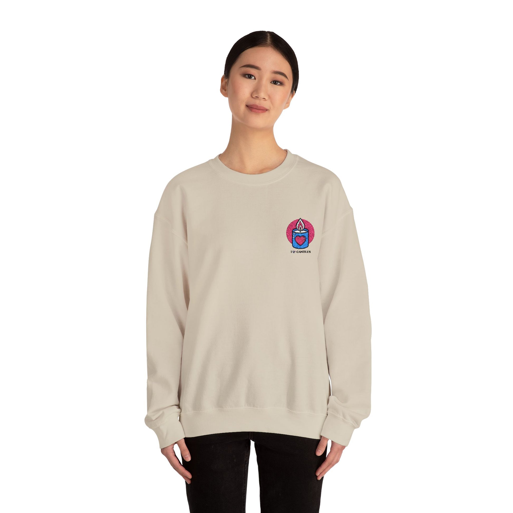 Rep your love of candles with this unisex heavy blend crewneck sweatshirt. These garments are made from polyester and cotton. This combination helps designs come out looking fresh and beautiful and provides pure comfort. The collar is ribbed knit, so it retains its shape even after washing. There are no itchy side seams on these sweaters.